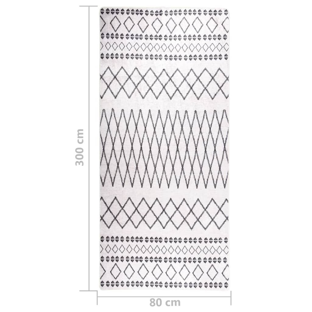 Teppich Waschbar 80x300 cm Schwarz und Weiß Rutschfest