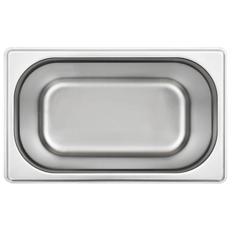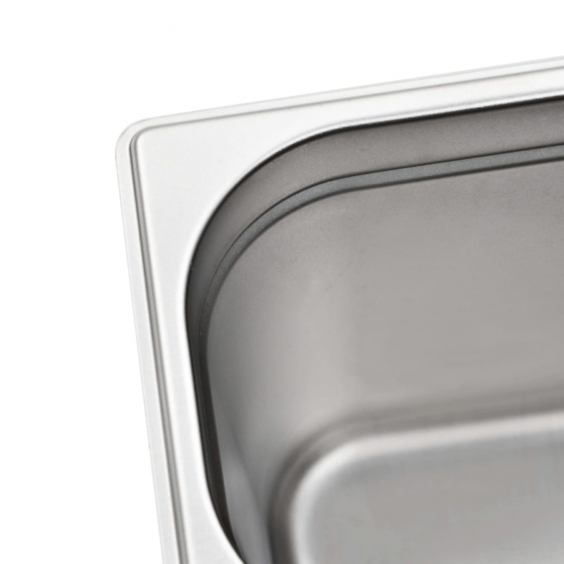 Diese stapelbaren Gastronorm-Behälter sind eine großartige Ergänzung zu Ihrem Küchengeschirr. Aus robustem Edelstahl gefertigt, weist der Gastronorm-Behälter eine solide Konstruktion auf. Dank des strapazierfähigen Materials ist er kratzfest und leicht zu reinigen. Das Bratblech mit Standard-Gastronorm- Abmessungen ermöglicht einen universellen Einsatz und eine Vielzahl von Kombinationen. Folglich passt es perfekt in alle professionelle Küchenschränke. Es eignet sich hervorragend für Bain-Marie, Chafing-Dishes und Salatbars. Das Kochgeschirr ist zudem stapelbar und kann demnach platzsparend verstaut werden. Daher ist sie sehr praktisch und ideal für den Einsatz in Restaurants, Hotels, auf Partys sowie zu Hause geeignet. Lieferung umfasst 4 Kochgeschirre.