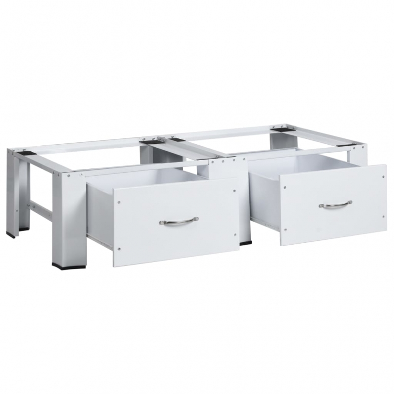 Dieses Doppel-Untergestell für Waschmaschine und Trockner hält deine Haushaltsgeräte fern vom Boden und bringt sie auf eine geeignete Arbeitshöhe, damit du dich nicht zu sehr bücken musst, um Wäsche hineinzulegen oder herauszunehmen. Das Doppel-Waschmaschinen-Untergestell ist aus starkem Stahl gefertigt, wodurch es sehr stabil ist und ein Gewicht von bis zu 100 kg tragen kann. Dank der rutschfesten Pads stehen das Waschmaschinen-Podest stabil. Die Füße sind außerdem mit Gummi versehen, wodurch dieser Waschmaschinensockel rutschfest ist und deine Böden vor Kratzern schützt. Das Doppel-Untergestell verfügt außerdem über zwei geschlossene Schubladen, die zusätzlichen Stauraum bieten.