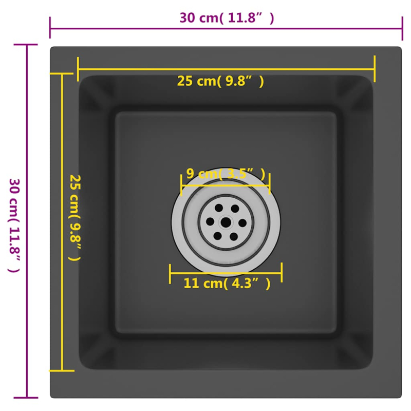 Handgemachte Einbauspüle Schwarz Edelstahl