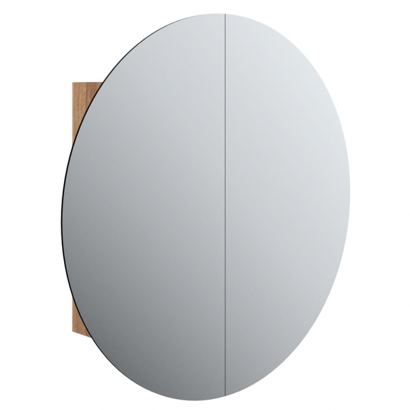 Badezimmerschrank mit Rundem Spiegel & LED Eichen-Optik