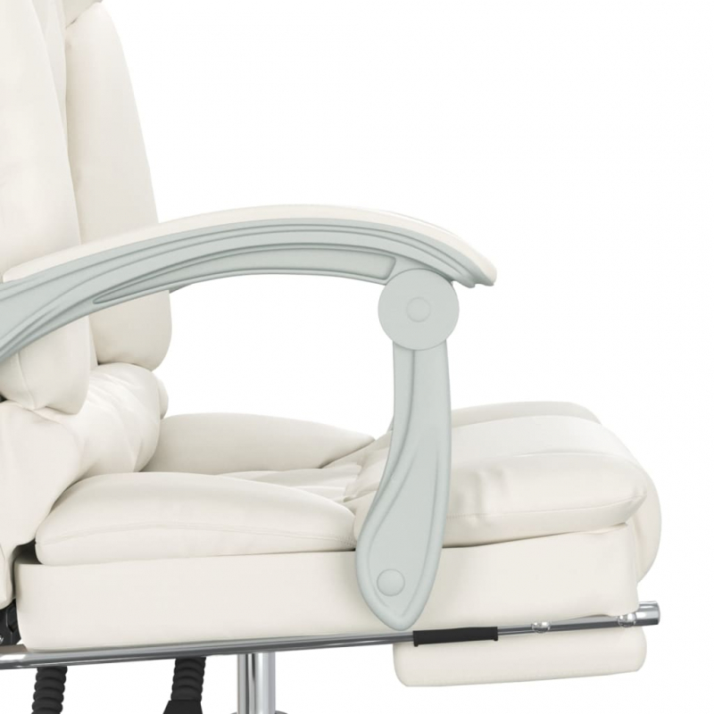 Mit seinem minimalistischen Design vereint dieser trendige Massage-Bürostuhl Eleganz und Komfort und ist ein echter Hingucker in deinem Arbeitsbereich. Langlebiges Kunstleder: Hochwertiges Kunstleder ist ein äußerst langlebiges Material. Es ist schmutzabweisend und lässt sich mit einem feuchten Tuch einfach reinigen. Durch die glatte Oberfläche weist es die Schönheit von Echtleder und einen luxuriösen Look auf.Massagefunktion: Der Massagepunkt am Rücken reduziert effektiv die Ermüdung, um entspannter zu arbeiten.Verstellbare Rückenlehne und Höhe: Der Sessel ist mit Liegefunktion ausgestattet, sodass du Rückenlehne und Fußstütze je nach Belieben einstellen kannst. Verwende den Hebel, um die Sitzhöhe nach Bedarf zu verstellen.Praktisches Design: Der Stuhl lässt sich auch um 360 Grad drehen, um eine größere Bewegungsfreiheit zu ermöglichen. Darüber hinaus lässt sich der Stuhl dank Rollen bequem umher verschieben.Robustes und stabiles Gestell: Die Gestelle aus Metall und Sperrholz sorgen für Robustheit und Stabilität. Gut zu wissen:Jedes Produkt wird mit einer Montageanleitung in der Verpackung für eine einfache Montage geliefert.Das Produkt verfügt über einen USB-Anschluss, aber die zertifizierte 5-V-USB-Stromquelle ist nicht im Lieferumfang enthalten.