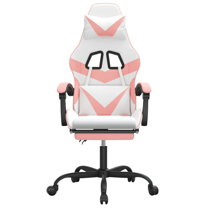 Gaming-Stuhl mit Fußstütze Drehbar Weiß & Rosa Kunstleder