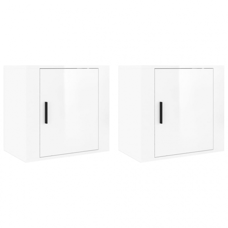 Wand-Nachttische 2 Stk. Hochglanz-Weiß 50x30x47 cm