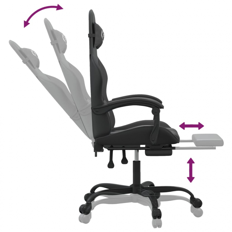 Genieße eine komfortable Sitzposition beim Spielen auf diesem einzigartigen Gaming-Stuhl und verbessere dein Spielerlebnis! Langlebiges Kunstleder: Hochwertiges Kunstleder ist ein äußerst langlebiges Material. Es ist schmutzabweisend und lässt sich mit einem feuchten Tuch einfach reinigen. Durch die glatte Oberfläche weist es die Schönheit von Echtleder und einen luxuriösen Look auf.Verstellbare Rückenlehne und Höhe: Der Sessel ist mit Liegefunktion ausgestattet, sodass du Rückenlehne und Fußstütze je nach Belieben einstellen kannst. Verwende den Hebel, um die Sitzhöhe nach Bedarf zu verstellen.Praktisches Design: Der Stuhl lässt sich auch um 360 Grad drehen, um eine größere Bewegungsfreiheit zu ermöglichen. Darüber hinaus lässt sich der Stuhl dank Rollen bequem umher verschieben.Robustes und stabiles Gestell: Die Gestelle aus Metall und Sperrholz sorgen für Robustheit und Stabilität. Hinweis:Jedes Produkt wird mit einer Montageanleitung in der Verpackung für einen einfachen Zusammenbau geliefert.
