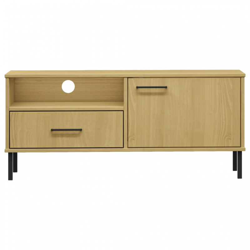 TV-Schrank OSLO mit Metallbeinen Braun Massivholz Kiefer