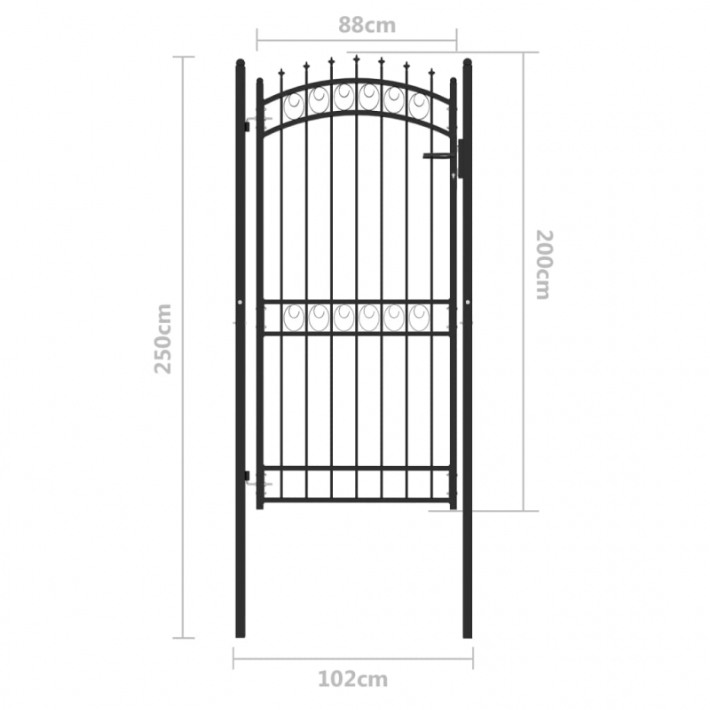 Dieses Zauntor bildet eine praktische Sicherheitsbarriere für Ihren Garten, Ihren Innenhof oder Ihre Terrasse. Das aus robustem Stahl gefertigte Zauntor hat eine robuste Konstruktion und wurde gegen Rost und Korrosion pulverbeschichtet. Mit den vertikalen Stäben mit Spitzen und der starken horizontalen Strebe als Verstärkung bietet dieses Gartentor ein hohes Maß an Sicherheit. Das gewölbte Oberteil trägt zu seiner Eleganz bei. Es wird mit zwei stabilen Pfosten und robusten Scharnieren für eine einfache Montage geliefert, und ein Schließsystem mit drei passenden Schlüsseln ist ebenfalls im Lieferumfang enthalten.