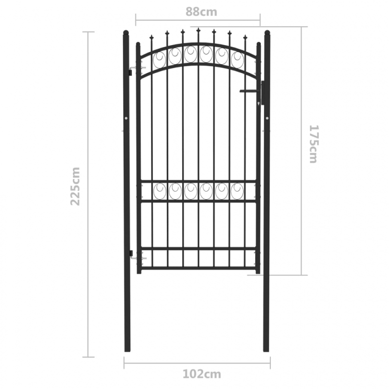 Dieses Zauntor bildet eine praktische Sicherheitsbarriere für Ihren Garten, Ihren Innenhof oder Ihre Terrasse. Das aus robustem Stahl gefertigte Zauntor hat eine robuste Konstruktion und wurde gegen Rost und Korrosion pulverbeschichtet. Mit den vertikalen Stäben mit Spitzen und der starken horizontalen Strebe als Verstärkung bietet dieses Gartentor ein hohes Maß an Sicherheit. Das gewölbte Oberteil trägt zu seiner Eleganz bei. Es wird mit zwei stabilen Pfosten und robusten Scharnieren für eine einfache Montage geliefert, und ein Schließsystem mit drei passenden Schlüsseln ist ebenfalls im Lieferumfang enthalten.