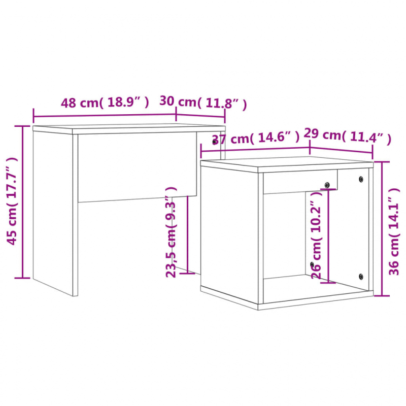 • Abmessungen des großen Tisches: 48 x 30 x 45 cm (L x B x H)