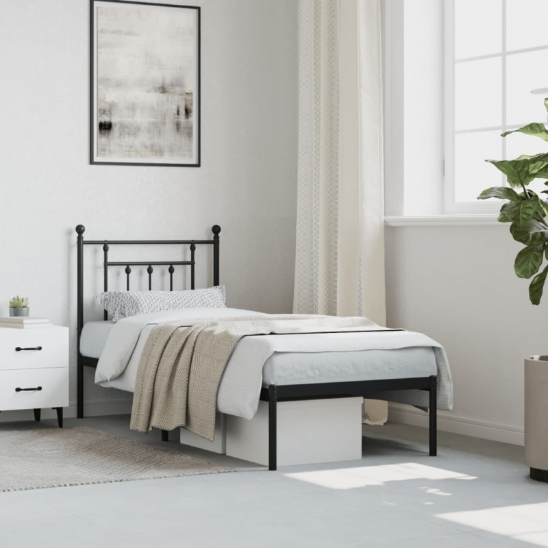 Bettgestell mit Kopfteil Metall Schwarz 75x190 cm