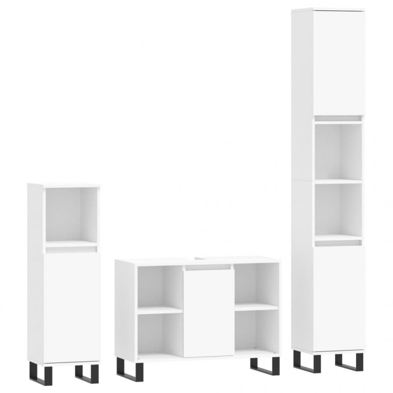 Dieses trendige Badmöbel-Set ist eine hervorragende Ergänzung zu deinem Badezimmer und verleiht ihm ein aufgeräumtes und markantes Aussehen! Langlebiges Material: Holzwerkstoff ist ein Material von außergewöhnlicher Qualität mit glatter Oberfläche, das sich durch Festigkeit, Stabilität und Feuchtigkeitsbeständigkeit auszeichnet. Eisenbeine: Die Eisenbeine verleihen deiner Einrichtung eine moderne und angenehme Note und sorgen gleichzeitig für Stabilität.Viel Stauraum: Der Badezimmerschrank bietet verschiedene Aufbewahrungsmöglichkeiten und viel Platz für die Aufbewahrung verschiedener Sachen in deinem Badezimmer. Praktisches Design: Die Oberseite des Waschbeckenunterschranks ist ideal für die Unterbringung des Waschbeckens. Achtung:Um ein Umkippen zu vermeiden, sollte dieses Produkt mit der mitgelieferten Wandhalterung gesichert werden. Gut zu wissen:Das Waschbecken ist nicht im Lieferumfang enthalten.Schrauben und Dübel sind für die Befestigung an der Wand nicht im Lieferumfang enthalten. Wir empfehlen, speziell für deine Wände geeignete Schrauben und Dübel zu finden und zu verwenden. Im Zweifelsfall wende dich an einen Fachmann. Bitte lese und befolge jeden Schritt der Anweisungen.