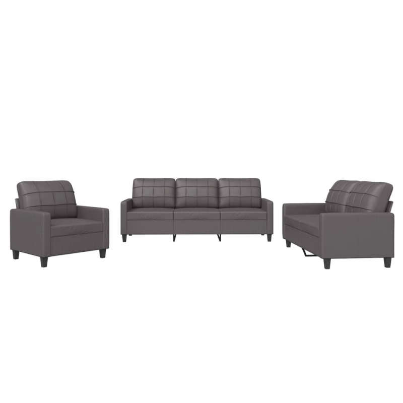 3-tlg. Sofagarnitur mit Kissen Grau Kunstleder