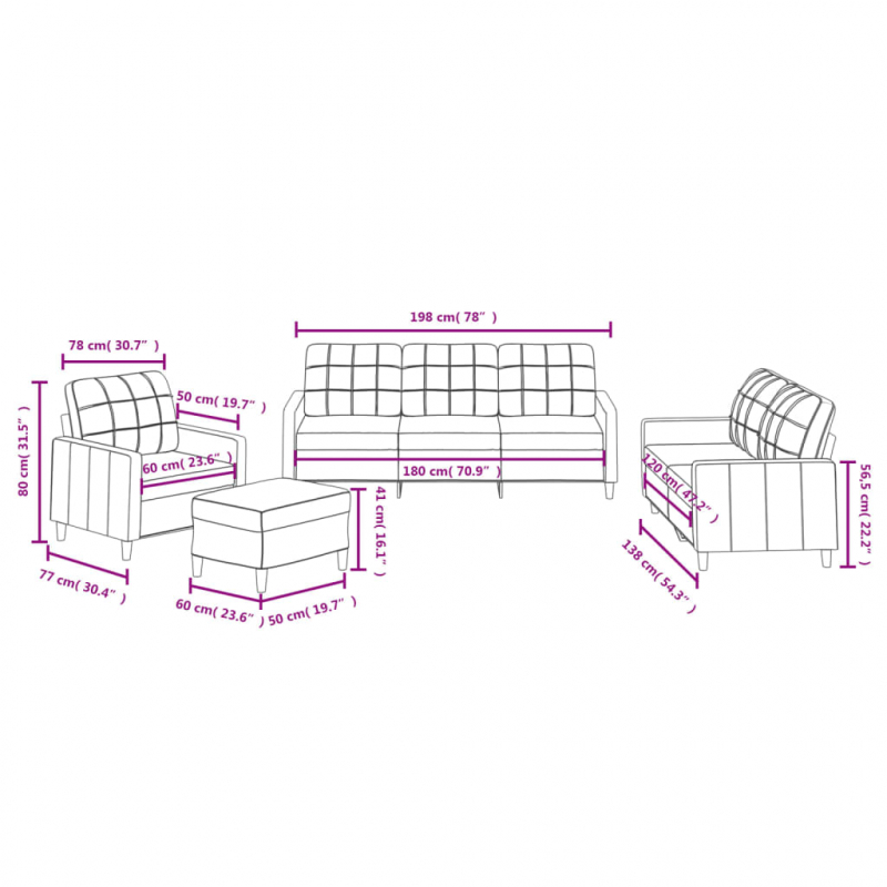 Diese Sofagarnitur bietet einen ausgezeichneten Platz zum Plaudern, Lesen, Fernsehen oder einfach nur zum Entspannen. Sie wird ein echter Blickfang in deinem Zuhause sein. Strapazierfähiger Stoff: Der Stoff zeichnet sich durch einen schlichten und sauberen Look aus und ist gleichzeitig atmungsaktiv und langlebig.Robustes und stabiles Gestell: Das Gestell aus Sperrholz und Metall verleiht der Sofagarnitur Robustheit und Stabilität.Bequemes Sitzerlebnis: Mit dick gepolsterten Sitzflächen, Armlehnen und Rückenkissen versehen, ist das Sofa sehr bequem.Vielseitiger Fußhocker: Der Hocker eignet sich zum Ausruhen der Füße beim Liegen auf dem Sofa, kann aber auch als zusätzliche Sitzgelegenheit in deinem Zimmer dienen. Darüber hinaus eignet er sich durch sein schlichtes Design und seine kompakte Größe für fast alle Wohnräume.