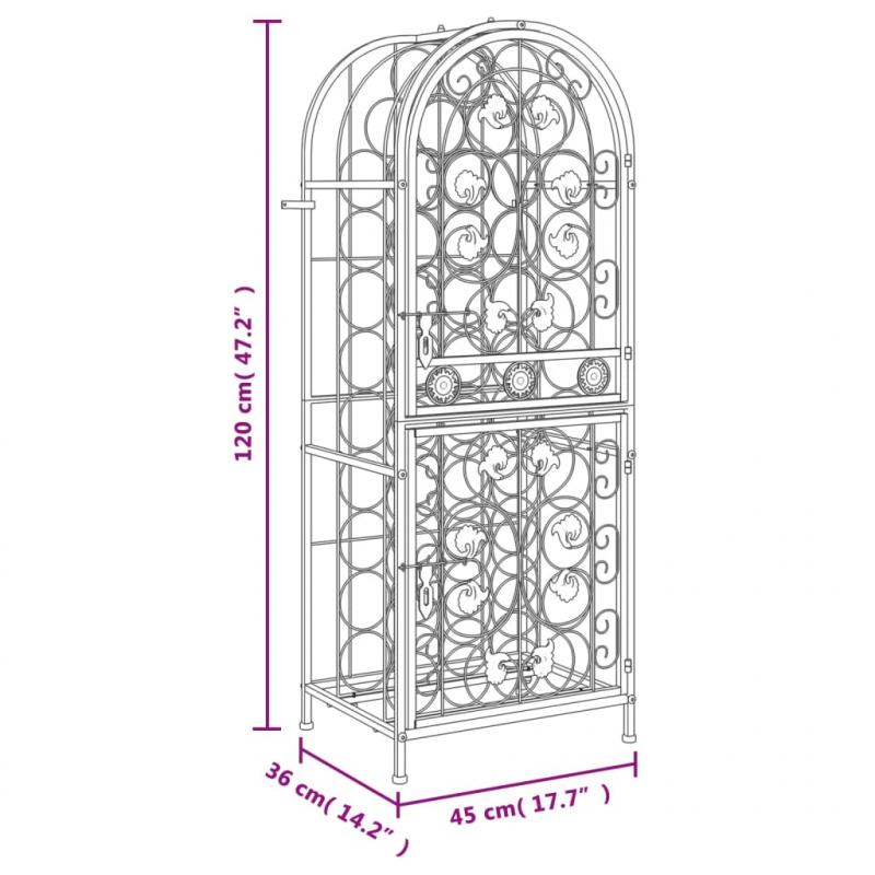 In diesem Weinregal kannst du deine Weine stilvoll aufbewahren, altern lassen und zur Schau stellen! Großes Fassungsvermögen: Dieses Weinregal bietet Platz für bis zu 41 Flaschen, um deinen Stauraum zu maximieren und für Ordnung zu sorgen. Stabile Konstruktion: Dieser Weinflaschenhalter ist aus robustem Schmiedeeisen gefertigt und mit einer schwarzen Pulverbeschichtung versehen, um Oxidation und Rost vorzubeugen. Die mitgelieferten Wandhalterungen verhindern, dass der Weinständer wackelt oder umkippt, sodass er über Jahre hinweg verwendet werden kann. Geeignet für viele Orte: Mit seinem schlichten und eleganten Design eignet sich dieses Weinregal perfekt für den Einsatz in Bars, Weinkellern, Küchen, Restaurants und mehr.Abschließbar: Dieses Weinregal aus Metall lässt sich abschließen, um das Herunterfallen der Weinflaschen zu verhindern und für mehr Sicherheit zu sorgen. Achtung:Um ein Umkippen zu vermeiden, sollte dieses Produkt mit der mitgelieferten Wandhalterung gesichert werden.