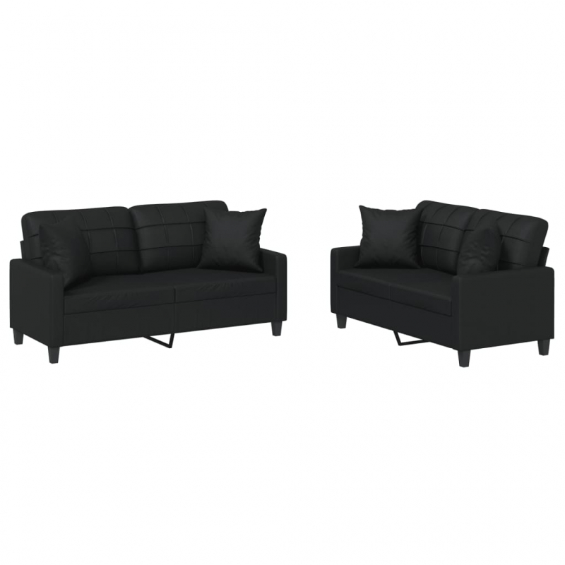 Diese Sofagarnitur bietet einen ausgezeichneten Platz zum Plaudern, Lesen, Fernsehen oder einfach nur zum Entspannen. Sie wird ein echter Blickfang in deinem Zuhause sein. Langlebiges Kunstleder: Hochwertiges Kunstleder ist ein äußerst langlebiges Material. Es ist schmutzabweisend und lässt sich mit einem feuchten Tuch einfach reinigen. Durch die glatte Oberfläche weist es die Schönheit von Echtleder und einen luxuriösen Look auf.Robustes und stabiles Gestell: Das Gestell aus Sperrholz und Metall verleiht der Sofagarnitur Robustheit und Stabilität.Bequemes Sitzerlebnis: Mit dick gepolsterten Sitzflächen, Armlehnen und Rückenkissen versehen, ist das Sofa sehr bequem.Praktische Couchkissen: Diese quadratischen Sofakissen werten nicht nur deine Einrichtung auf, sondern sorgen auch für zusätzlichen Komfort beim Sitzen oder Liegen.