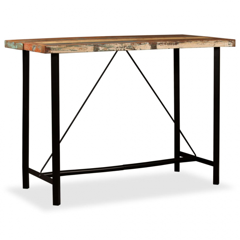 Dieses coole Bar-Set im angesagten Industrie-Look ist der Hingucker – ob zu Hause, im Restaurant oder an der Bar. Der Stehtisch ist aus massivem Altholz gefertigt, was bedeutet, dass er die Eigenschaften verschiedener Holzarten wie Teak-, Mango-, Akazienholz usw. aufweist. Altholz ist massiv, stabil, langlebig und schön. Die Gebrauchsspuren und die handwerkliche Fertigung verleihen jedem Stück ein einzigartiges Aussehen. Er ist vollständig handgefertigt. Die robusten Stahlbeine machen den Stehtisch sehr stabil und langlebig und tragen zu seinem spektakulären industriellen Stil bei. Wichtiger Hinweis: Die Holzmaserungen und Farben können von Stück zu Stück variieren, sodass jedes Stück ein Unikat ist; die Lieferung erfolgt nach dem Zufallsprinzip. Das Sitzpolster aus feinstem Echtleder verleiht dem Barhocker Langlebigkeit und Komfort. Das stabile Stahl-Untergestell sorgt für den markanten Industrie-Look und einen festen Stand. Die Lieferung umfasst 1 Bartisch und 6 Barhocker. Die Montage gelingt mühelos.