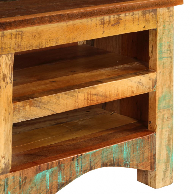 Dieser klassische TV-Schrank aus Holz besticht durch sein uriges Design. Daher ist er eine wunderbare Ergänzung zu deinem Interieur. Der Beistellschrank ist aus massivem Altholz gefertigt, das aus Balken, Fußböden und Stützbalken alter, abgerissener Gebäude stammt. Altholz kann aus verschiedenen Holzarten wie Kiefer, Teak, Buche, Eiche, Zeder, Mangoholz, Akazie usw. bestehen. Dies bedeutet, dass das wiedergewonnene Holz die Eigenschaften dieser verschiedenen Holzarten beibehält. Altholz ist bereits gealtert, verwittert und getrocknet, sodass es nicht schrumpft oder sich verbiegt. Das Lowboard ist komplett handgefertigt und die feine Holzmaserung macht jedes Möbelstück zu einem Unikat. Die Metallteile tragen zum Industrie-Stil des Schranks bei. Mit 2 Schubladen und 2 Ablagen versehen, bietet das Sideboard reichlich Platz, um Multimedia-Geräte, Bücher und andere Sachen übersichtlich aufzubewahren. Wichtiger Hinweis: Die Farben variieren von Stück zu Stück und machen jedes Möbelstück einzigartig. Die Lieferung erfolgt nach dem Zufallsprinzip, wodurch die Exklusivität und Individualität deines Produkts gewährleistet wird.