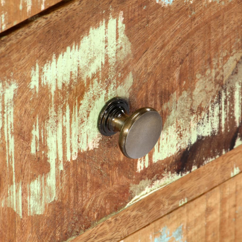 Dieser TV-Schrank aus Holz im klassischen Stil besticht durch sein uriges Design und ist eine absolut hinreißende Bereicherung für dein Interieur. Der TV-Schrank ist aus massivem Altholz gefertigt, das aus Balken, Fußböden und Stützbalken von alten Gebäuden stammt. Es besteht daher aus verschiedenen Holzarten wie Kiefer, Teak, Buche, Eiche, Zeder, Mangoholz, Akazienholz usw. Dies bedeutet, dass das wiedergewonnene Holz die Eigenschaften dieser verschiedenen Holzarten beibehält. Altholz ist bereits gealtert, verwittert und getrocknet, sodass es nicht schrumpft oder sich verbiegt. Die exquisite Handwerkskunst und die feine Holzmaserung machen jedes Möbelstück zu einem Unikat. Mit 2 Schubladen und 1 Fach versehen, bietet der TV-Schrank reichlich Platz, um Multimedia-Geräte, Bücher und andere Sachen übersichtlich aufzubewahren. Unser TV-Schrank ist bereits zusammengebaut. Keine Montage erforderlich. Wichtiger Hinweis: Die Farben variieren von Stück zu Stück und machen jedes Möbelstück einzigartig. Die Lieferung erfolgt nach dem Zufallsprinzip, wodurch die Exklusivität und Individualität deines Produkts gewährleistet wird.