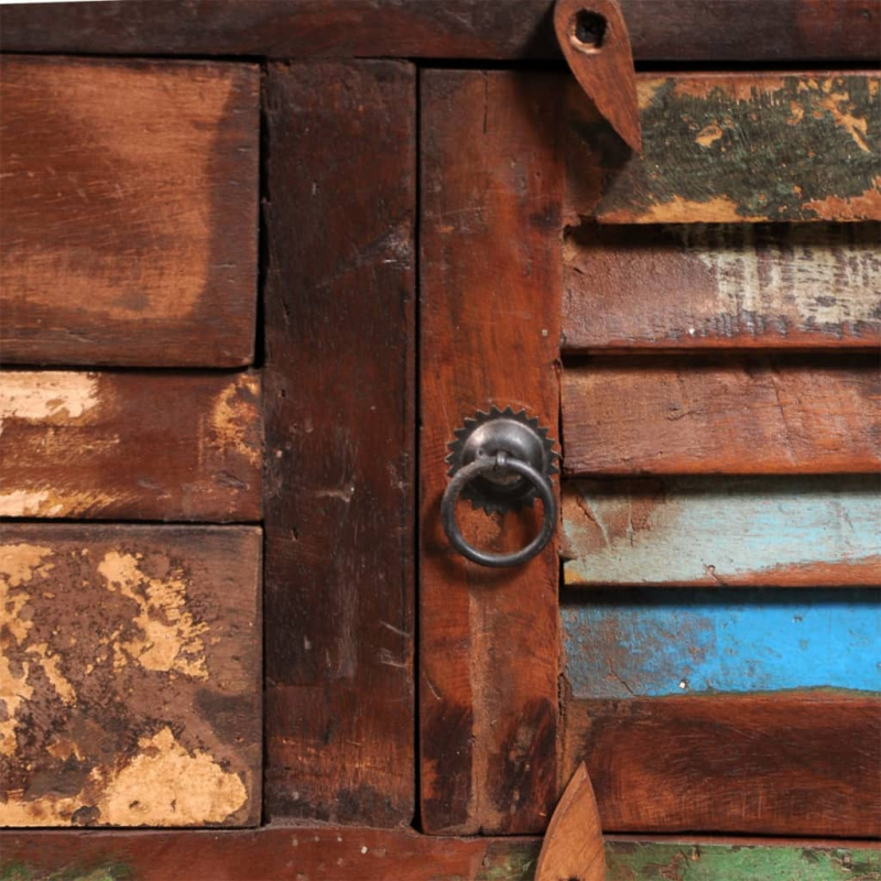 Dieser Beistellschrank aus Holz im Antik-Stil ist mit 1 Tür und 2 Schubladen versehen und bietet reichlich Stauraum, um deine Sachen ganz ordentlich aufzubewahren. Auf die stabile Oberplatte kannst du auch eine Tischlampe, Kosmetikartikel oder einige Dekorationen stellen. Dieser TV-Schrank besteht aus recyceltem Holz, was jedes Möbelstück zu einem Unikat macht. Möbel aus Altholz weisen die Eigenschaften verschiedener Holzarten wie Teak-, Akazien- oder Mangoholz auf und sind daher robust, stabil, langlebig und optisch ansprechend. Mögliche Nagellöcher oder klare Maserungen sind Teil der Geschichte des Holzes und laden eine weitere Generation ein, sie mit ihrer eigenen zu prägen. Dieses Möbelstück zeugt von Ressourcenschonung, Umweltschutz und nachhaltiger Entwicklung in deinem Zuhause. Die reine Handwerkskunst trägt zum spektakulären Vintage-Stil des Schranks bei und verleiht ihm eine exotische Note. Jeder Schritt des Fertigungsprozesses wurde mit größter Sorgfalt durchgeführt, sei es Rekombinieren, Polieren, Lackieren oder Wachsen. Dieser Beistellschrank im Antik-Stil ist daher eine perfekte Ergänzung zu deinem Zuhause! Wichtiger Hinweis: Die Farben variieren von Stück zu Stück und machen jede Anrichte zu einem Unikat. Die Lieferung erfolgt nach dem Zufallsprinzip und gewährleistet so die Exklusivität und Individualität deines Möbels.