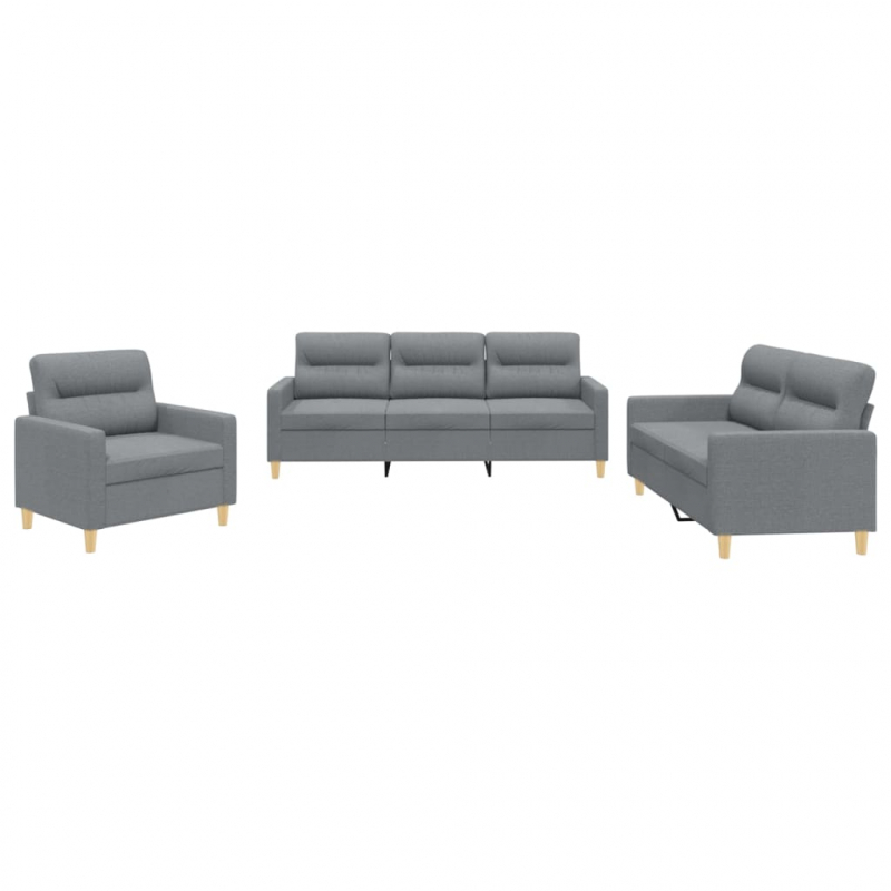 3-tlg. Sofagarnitur mit Kissen Hellgrau Stoff