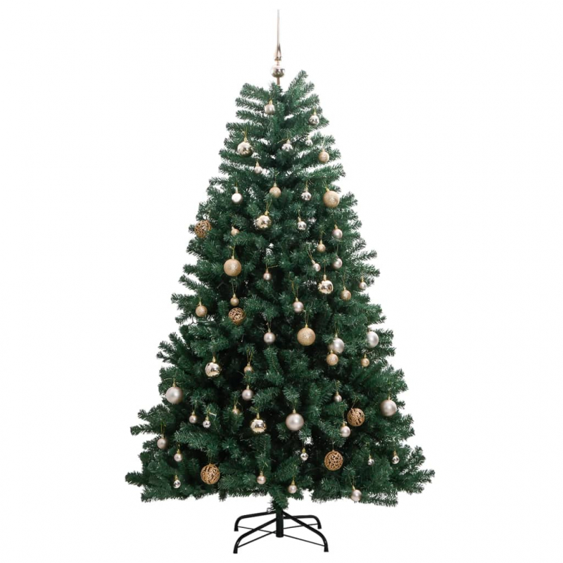 Dieser künstliche Klapp-Weihnachtsbaum mit LEDs und Schmuck ist ein echter Hingucker am Abend und schafft genau die richtige Weihnachtsstimmung. Klappdesign: Dank des Klappdesigns lassen sich die Äste dieses Weihnachtsbaums automatisch im rechten Winkel herunterklappen. Dies erleichtert das Aufstellen des Baums in perfekter Form und spart auch Zeit.8 Beleuchtungsmodi: Die LED-Lichterkette verfügt über 8 verschiedene Lichteffekte (Kombination, in Welle, sequentiell, langsames Glühen, jagendes/laufendes Wasser, langsames Verblassen, Glitzern/Blinken und Dauerlicht). Du kannst die Beleuchtungsmodi durch Drücken der Taste am USB wechseln, um verschiedene Stimmungen zu schaffen.Schöne Weihnachtsdeko: Die glänzenden Weihnachtskugeln kommen in drei verschiedenen Größen, um deinen Weihnachtsbaum nach Belieben zu schmücken.Stabiler Ständer: Der Metallständer verleiht deinem Weihnachtsbaum optimale Robustheit und Stabilität.Wirtschaftliche Wahl: Du kannst den Weihnachtsbaum jedes Jahr wiederverwenden, was ihn im Vergleich zu einem echten Tannenbaum zu einer kostengünstigerer Wahl macht. Gut zu wissen:Wir empfehlen, sich nach dem Zusammenbau 45-60 Minuten Zeit zu nehmen, um den Baum richtig in Form zu bringen, indem man die Äste zurückzieht und die Spitzen auseinanderzieht, um dem Baum ein voluminöses Aussehen zu verleihen.Das Produkt verfügt über einen USB-Anschluss, für den eine zertifizierte 5V-USB-Stromquelle erforderlich ist (nicht im Lieferumfang enthalten).Bitte stelle sicher, dass der USB-Anschluss in einer trockenen Umgebung angeschlossen wird.