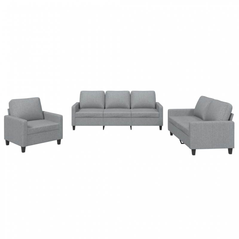 3-tlg. Sofagarnitur mit Kissen Hellgrau Stoff