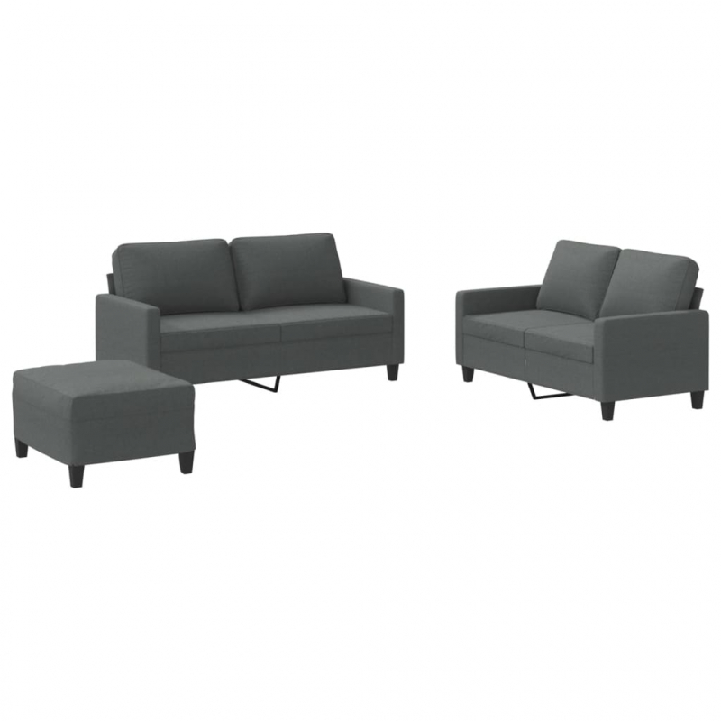 3-tlg. Sofagarnitur mit Kissen Dunkelgrau Stoff