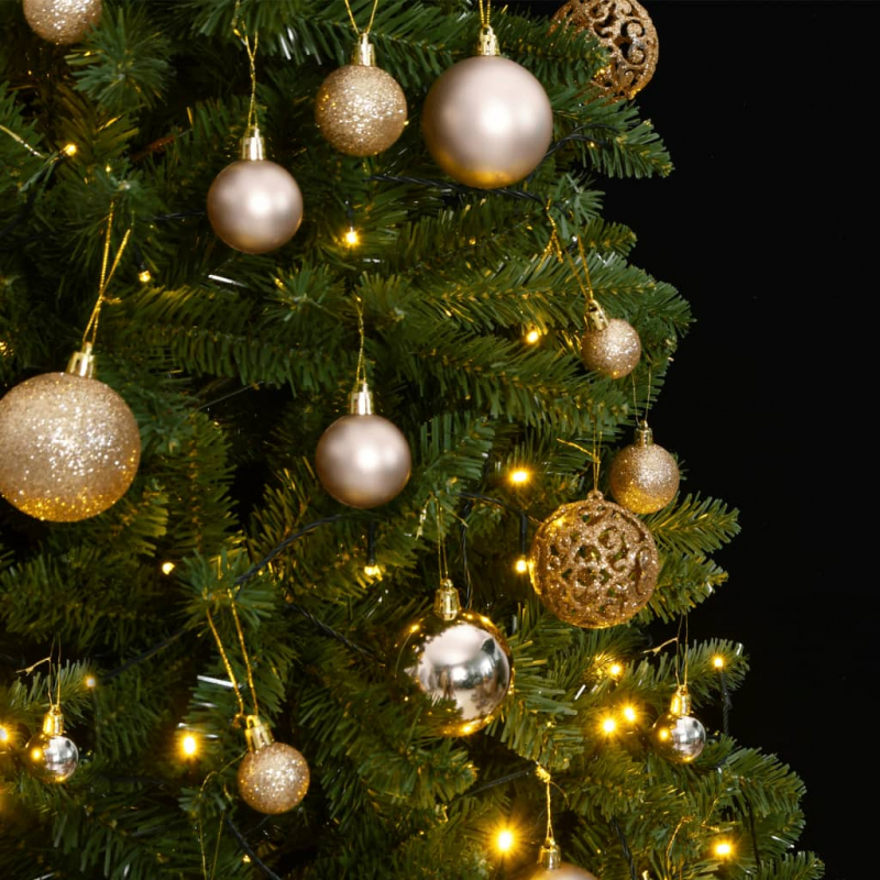 Dieser künstliche Klapp-Weihnachtsbaum mit LEDs und Schmuck ist ein echter Hingucker am Abend und schafft genau die richtige Weihnachtsstimmung. Klappdesign: Dank des Klappdesigns lassen sich die Äste dieses Weihnachtsbaums automatisch im rechten Winkel herunterklappen. Dies erleichtert das Aufstellen des Baums in perfekter Form und spart auch Zeit.8 Beleuchtungsmodi: Die LED-Lichterkette verfügt über 8 verschiedene Lichteffekte (Kombination, in Welle, sequentiell, langsames Glühen, jagendes/laufendes Wasser, langsames Verblassen, Glitzern/Blinken und Dauerlicht). Du kannst die Beleuchtungsmodi durch Drücken der Taste am USB wechseln, um verschiedene Stimmungen zu schaffen.Schöne Weihnachtsdeko: Die glänzenden Weihnachtskugeln kommen in drei verschiedenen Größen, um deinen Weihnachtsbaum nach Belieben zu schmücken.Stabiler Ständer: Der Metallständer verleiht deinem Weihnachtsbaum optimale Robustheit und Stabilität.Wirtschaftliche Wahl: Du kannst den Weihnachtsbaum jedes Jahr wiederverwenden, was ihn im Vergleich zu einem echten Tannenbaum zu einer kostengünstigerer Wahl macht. Gut zu wissen:Wir empfehlen, sich nach dem Zusammenbau 60-75 Minuten Zeit zu nehmen, um den Baum richtig in Form zu bringen, indem man die Äste zurückzieht und die Spitzen auseinanderzieht, um dem Baum ein voluminöses Aussehen zu verleihen.Das Produkt verfügt über einen USB-Anschluss, für den eine zertifizierte 5V-USB-Stromquelle erforderlich ist (nicht im Lieferumfang enthalten).Bitte stelle sicher, dass der USB-Anschluss in einer trockenen Umgebung angeschlossen wird.
