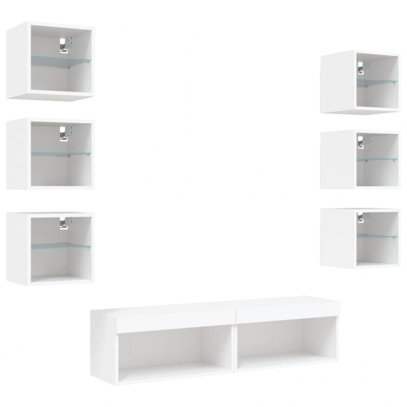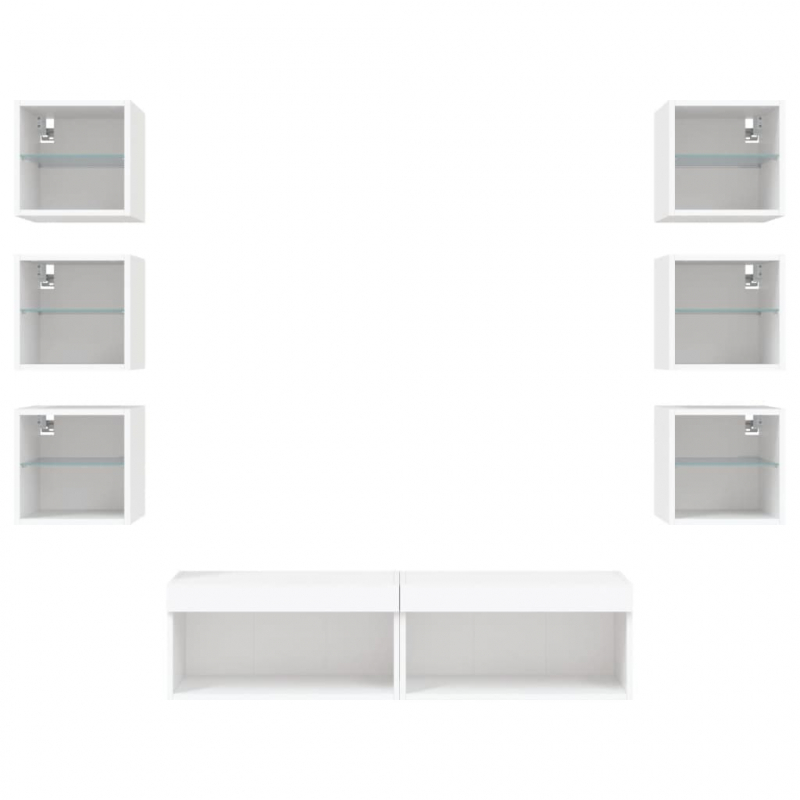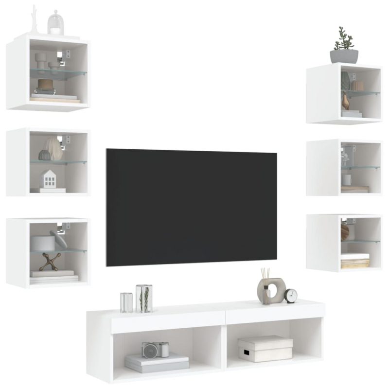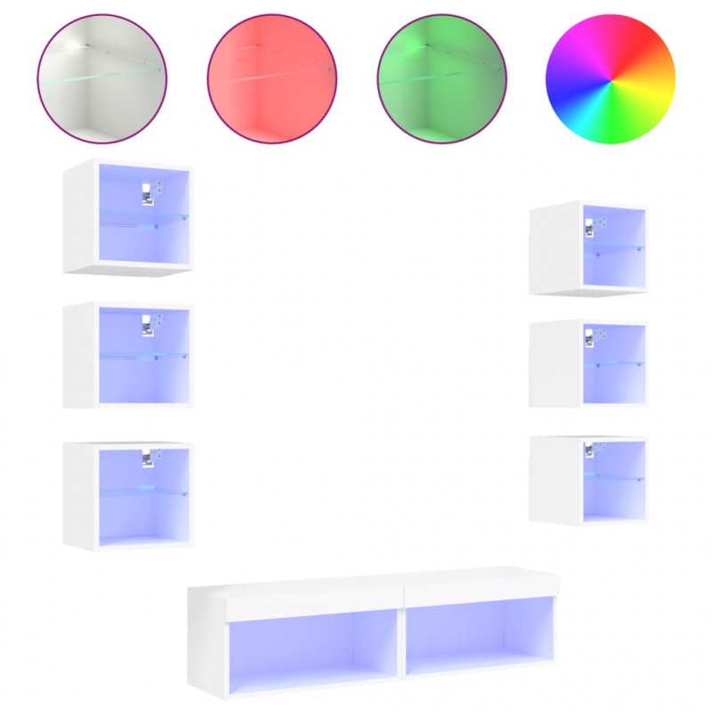 8-tlg. Wohnwand mit LED-Beleuchtung Weiß Holzwerkstoff