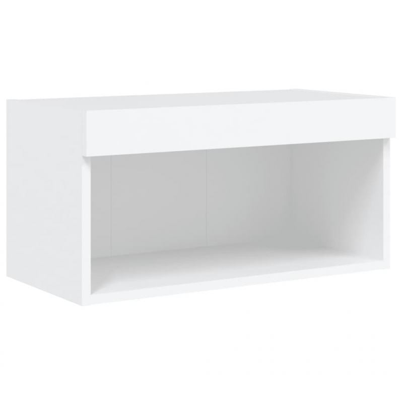 Diese TV-Wandschränke bieten eine perfekte Lösung, um zusätzlichen Stauraum in deinem Wohnraum zu schaffen und für Ordnung zu sorgen. Robustes Material: Holzwerkstoff ist ein Material von außergewöhnlicher Qualität mit glatter Oberfläche, das sich durch Festigkeit, Stabilität und Feuchtigkeitsbeständigkeit auszeichnet.RGB-LED-Leuchten: Die Wohnwand ist mit lebendigen RGB-LED-Leuchten ausgestattet. Mit verschiedenen anpassbaren Menüs kannst du die Farbe der Lichter mühelos wechseln und sie sogar auf automatische Anpassung einstellen. Diese LED-Leuchten unterstreichen nicht nur den modernen Look des TV-Wandschranks, sondern tragen auch zu seiner trendigen Optik bei.Wandmontage: Der TV-Schrank lässt sich an der Wand montieren, um zusätzlichen Stauraum zu schaffen. Auf diese Weise kannst du deine Bodenfläche maximieren und für Ordnung im Raum sorgen.Reichlich Stauraum: Das TV-Wandschrank-Set bietet reichlich Platz, um Bücher, DVDs, Zeitschriften, Medien und andere Alltagsgegenstände übersichtlich und griffbereit zu verstauen.Vielseitiges Design: Du kannst den Schrank als TV-Schrank verwenden oder ihn im Arbeitszimmer an der Wand montieren, um Utensilien oder andere Gegenstände bequem aufzubewahren. Zudem verwandelt er eine leere Wand sofort in ein Design-Element. Gut zu wissen:Schrauben und Dübel für die Innenseite der Wand sind nicht enthalten. Wir empfehlen dir, Schrauben und Dübel zu finden und zu verwenden, die speziell für deine Wände geeignet sind. Wenn du dir nicht sicher bist, kannst du dich an einen Fachmann wenden. Bitte lies und befolge jeden Schritt in der Anleitung.Das Produkt verfügt über einen USB-Anschluss, für den eine zertifizierte 5V-USB-Stromquelle erforderlich ist (nicht im Lieferumfang enthalten).