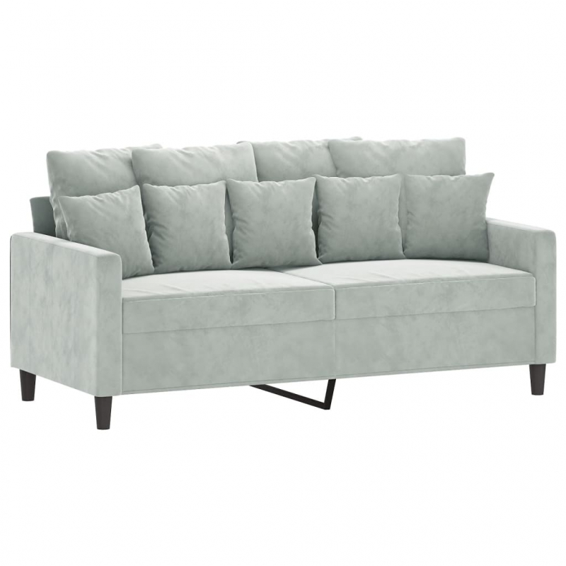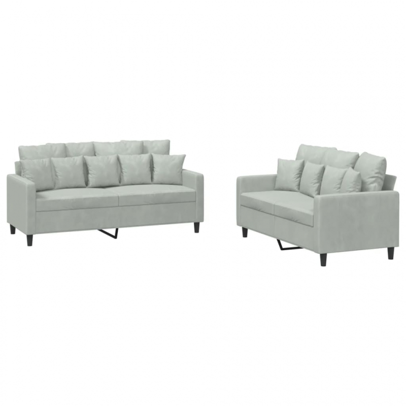 2-tlg. Sofagarnitur mit Kissen Hellgrau Samt