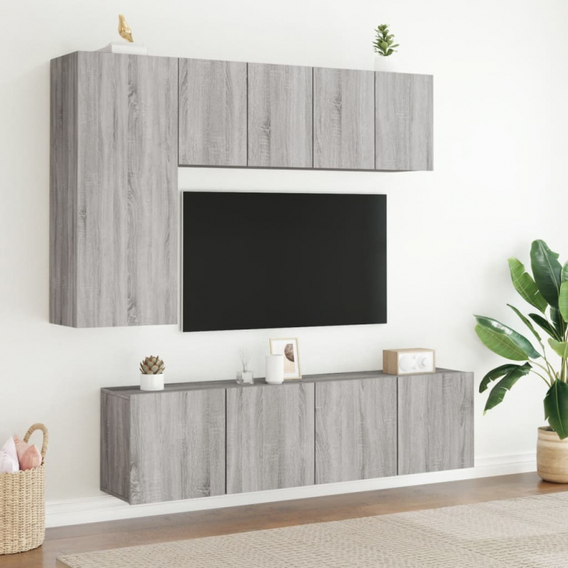 5-tlg. Wohnwand Grau Sonoma Holzwerkstoff