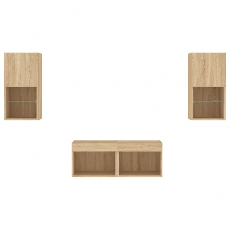 4-tlg. TV-Wohnwand mit LED-Leuchten Sonoma-Eiche