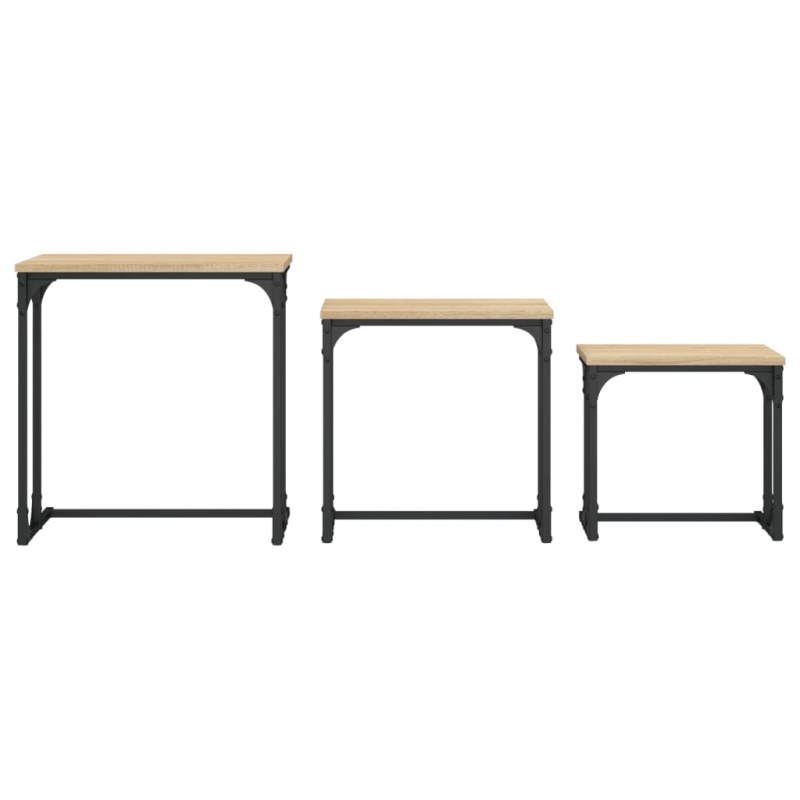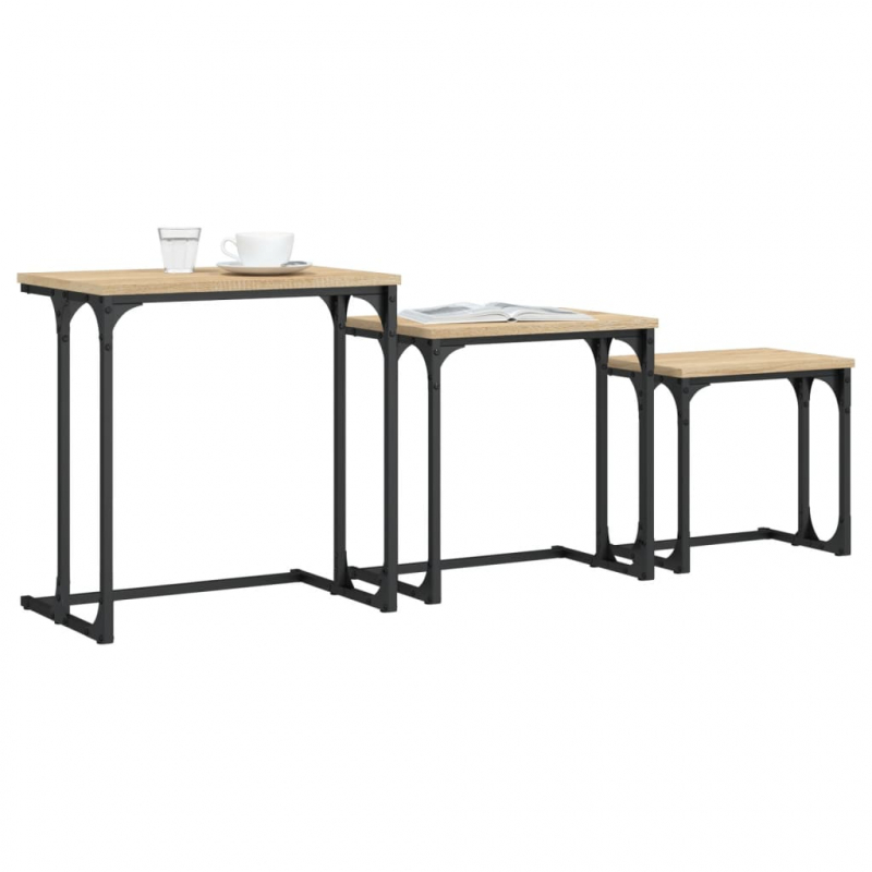 Dieses 3-teilige Satztisch-Set eignet sich perfekt für kleine Wohnungen oder Räume mit begrenztem Platzangebot. Durch sein industrielles Design ist dieses Tisch-Set eine schicke Ergänzung zu jedem Wohnzimmer, Schlafzimmer oder Büro. Langlebiges Material: Der Holzwerkstoff ist von außergewöhnlicher Qualität mit glatter Oberfläche und zeichnet sich außerdem durch Festigkeit, Stabilität und Widerstandsfähigkeit gegen Feuchtigkeit aus. Diese Nisttische aus Holzwerkstoff sind leicht zu reinigen.Satztisch-Set: Das Couchtisch-Set in verschiedenen Größen wird unterschiedlichen Anforderungen gerecht. Dabei lassen sich die kleineren Tische unter dem größeren verstauen, um bei Bedarf Platz zu sparen. Du kannst die Tische auch separat verwenden, um mehr Stauraum zu schaffen.Stabile Platte: Die robuste Tischplatte des Nesting-Ständers ist ideal, um deine Getränke oder andere Dinge, die du brauchst, griffbereit zu haben.Vielseitige Funktion: Die Nesting-Beistelltische sind vielseitig! Jeder von ihnen kann als Nachttisch im Schlafzimmer, als Beistelltisch oder als Couchtisch im Wohnzimmer und im Büro verwendet werden.Metallrahmen: Der Metallrahmen verleiht deiner Einrichtung einen industriellen Stil und sorgt gleichzeitig für Haltbarkeit und Stabilität.