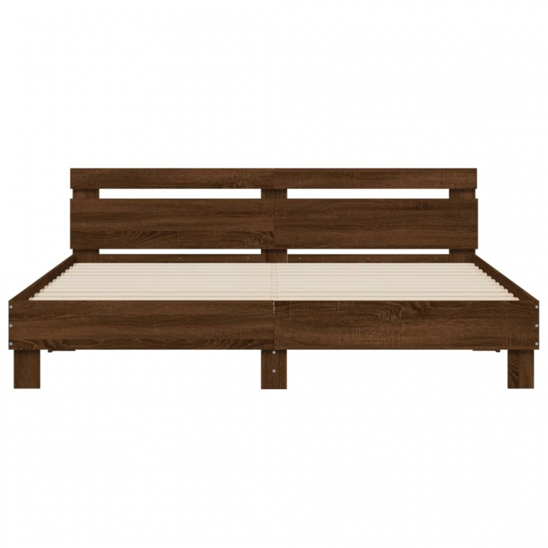Bettgestell mit Kopfteil und LED-Beleuchtung Braun Eiche-Optik