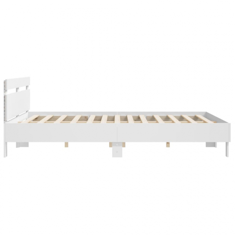 Bettgestell mit Kopfteil und LED-Beleuchtung Weiß 200x200 cm
