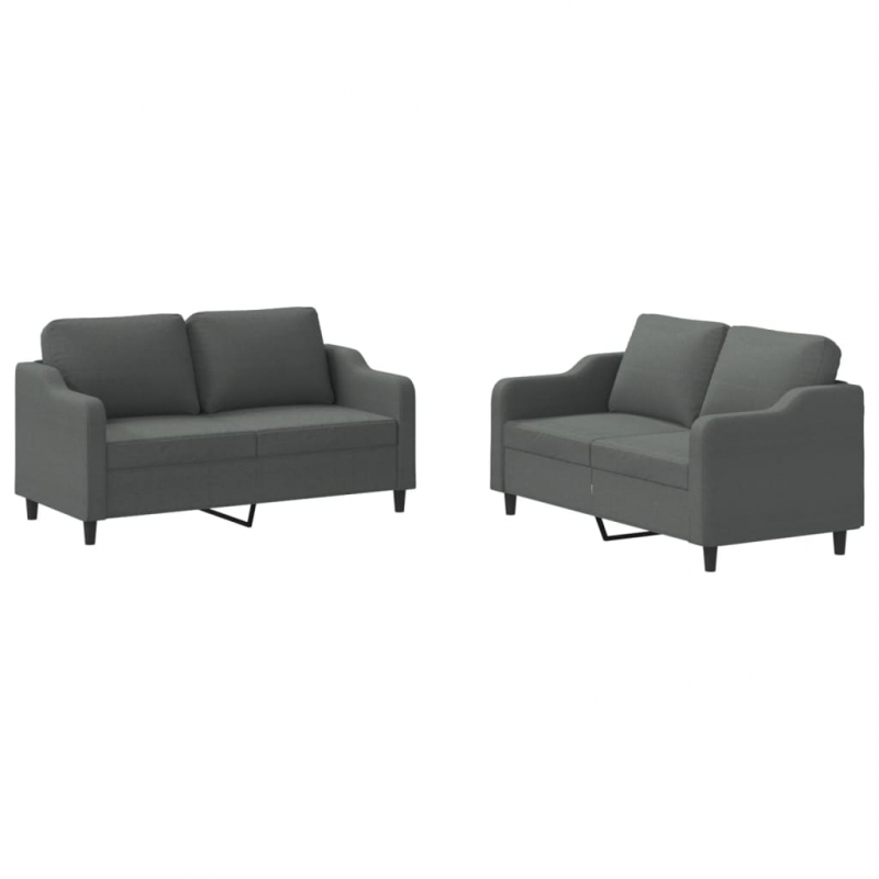 2-tlg. Sofagarnitur mit Kissen Dunkelgrau Stoff