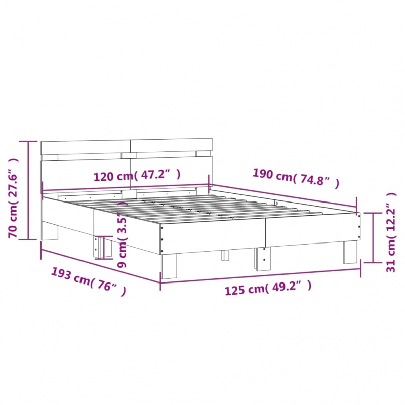 Bettgestell mit Kopfteil Räuchereiche 120x190 cm Holzwerkstoff