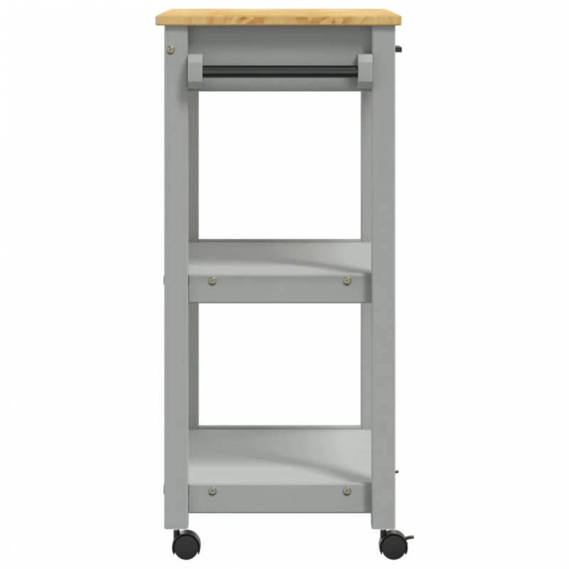 Dieser Küchenwagen aus Holz verleiht deiner Küche eine unverwechselbare Vintage-Note und schafft zusätzlichen Stauraum! Langlebiges Material: Kiefer-Massivholz ist ein wunderschönes Naturmaterial. Kiefernholz hat eine gerade Maserung und die Aststellen verleihen dem Material sein typisches, rustikales Aussehen. Aus Kiefer-Massivholz gefertigt, ist dieser Küchenwagen langlebig und robust. Viel Stauraum: Dieser Küchenwagen ist mit einer Schublade und 2 offenen Ablagen ausgestattet, die reichlich Stauraum für Küchenutensilien bieten. Auf der seitlichen Holzstange und den Metallhaken kannst du verschiedene Sachen griffbereit aufbewahren. Leicht zu bewegen: Dieser Servierwagen verfügt über 4 Räder, davon sind 2 feststellbar, sodass er sich jederzeit flexibel bewegen lässt und stabil steht. Vielseitige Anwendungsmöglichkeiten: Der Rollwagen kann in der Küche, im Wohnzimmer, im Badezimmer, im Arbeitszimmer und an anderen Orten verwendet werden. Du kannst hier deine Alltagsgegenstände, Gewürze, Toilettenartikel, Bücher und andere Dinge aufbewahren, um dein Zuhause aufgeräumt zu halten.