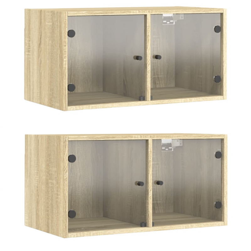 Diese Wandschränke weisen eine ansprechende und elegante Optik auf. Sie bieten nicht nur Platz zur Aufbewahrung verschiedener Sachen und Dekorationen, sondern verwandeln auch eine leere Wand sofort in ein echtes Design-Element. Langlebiges Material: Der Holzwerkstoff ist von außergewöhnlicher Qualität mit glatter Oberfläche und zeichnet sich außerdem durch Festigkeit, Stabilität und Widerstandsfähigkeit gegen Feuchtigkeit aus.Viel Stauraum: Die Hängeschränke sind mit mehreren Fächern versehen, in denen du Gegenstände wie Bücher ordentlich und griffbereit aufbewahren kannst.Vielseitiges Design: Du kannst diese Schränke an der Wand im Büro befestigen, um Utensilien oder andere Sachen bequem zu verstauen. Zudem verwandeln sie eine leere Wand sofort in ein Design-Element.Wandmontage: Diese Schränke lassen sich an der Wand montieren, um zusätzlichen Stauraum zu schaffen. Auf diese Weise kannst du deine Bodenfläche maximieren und für Ordnung im Raum sorgen.Praktische Glastüren: Sorge für Ordnung in deinem Raum, indem du verschiedene Kleinigkeiten hinter den Türen verstaust. Zudem eignen sich die Schwebeschränke dank der Glastüren ideal, um verschiedene Sachen zur Schau zu stellen. Gut zu wissen:Schrauben und Dübel für die Innenseite der Wand sind nicht enthalten. Wir empfehlen dir, Schrauben und Dübel zu finden und zu verwenden, die speziell für deine Wände geeignet sind. Wenn du dir nicht sicher bist, kannst du dich an einen Fachmann wenden. Bitte lies und befolge jeden Schritt in der Anleitung.