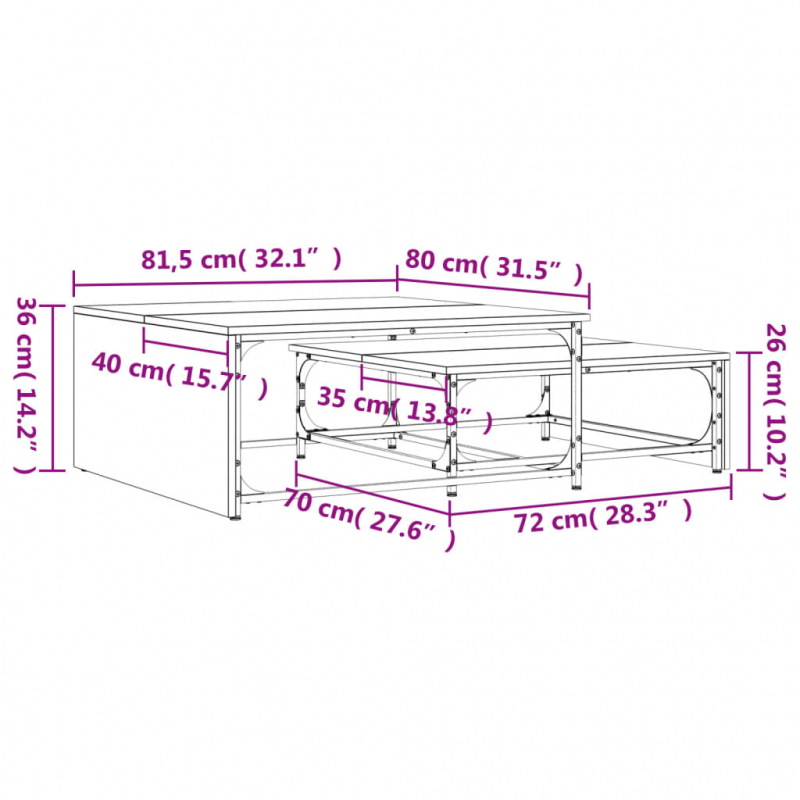 Die 2 Satztische bieten eine perfekte Alternative für kleine Wohnungen oder überall dort, wo der Platz etwas begrenzt ist. Langlebiges Material: Die Satztische bestehen aus Holzwerkstoff, der von außergewöhnlicher Qualität ist, eine glatte Oberfläche hat und sich durch Festigkeit, Stabilität und Feuchtigkeitsbeständigkeit auszeichnet.Nesting-Design: Die Satztische kommen in verschiedenen Größen, um deinen unterschiedlichen Bedürfnissen gerecht zu werden. Zudem lässt sich der kleinere Tisch platzsparend unter dem größeren Couchtisch verstauen.Stabile Platte: Die stabile Tischplatte der Satztische bietet den idealen Platz für Getränke oder andere Sachen, die du griffbereit haben möchtest.Metallrahmen: Der Metallrahmen verleiht deiner Einrichtung einen industriellen Stil und sorgt gleichzeitig für Haltbarkeit und Stabilität.