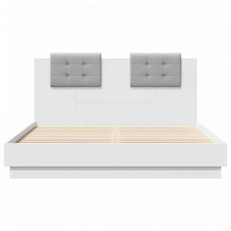 Bettgestell mit Kopfteil und LED-Beleuchtung Weiß 150x200 cm