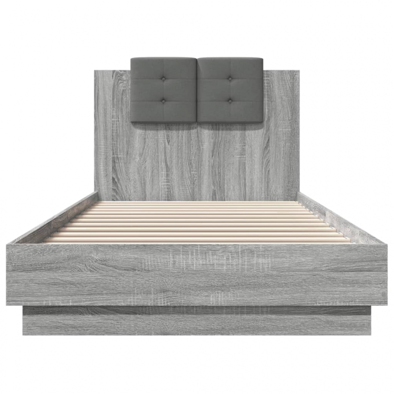 Bettgestell mit Kopfteil und LED-Leuchten Grau Sonoma 90x200 cm