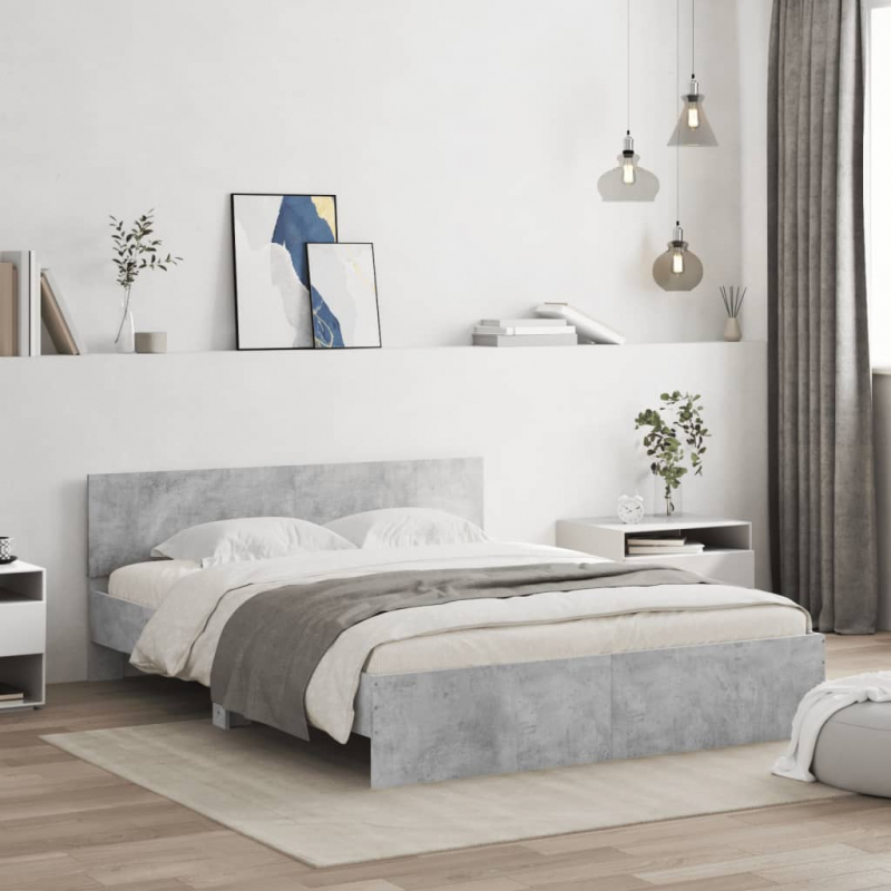 Bettgestell mit Kopfteil und LED-Beleuchtung Betongrau