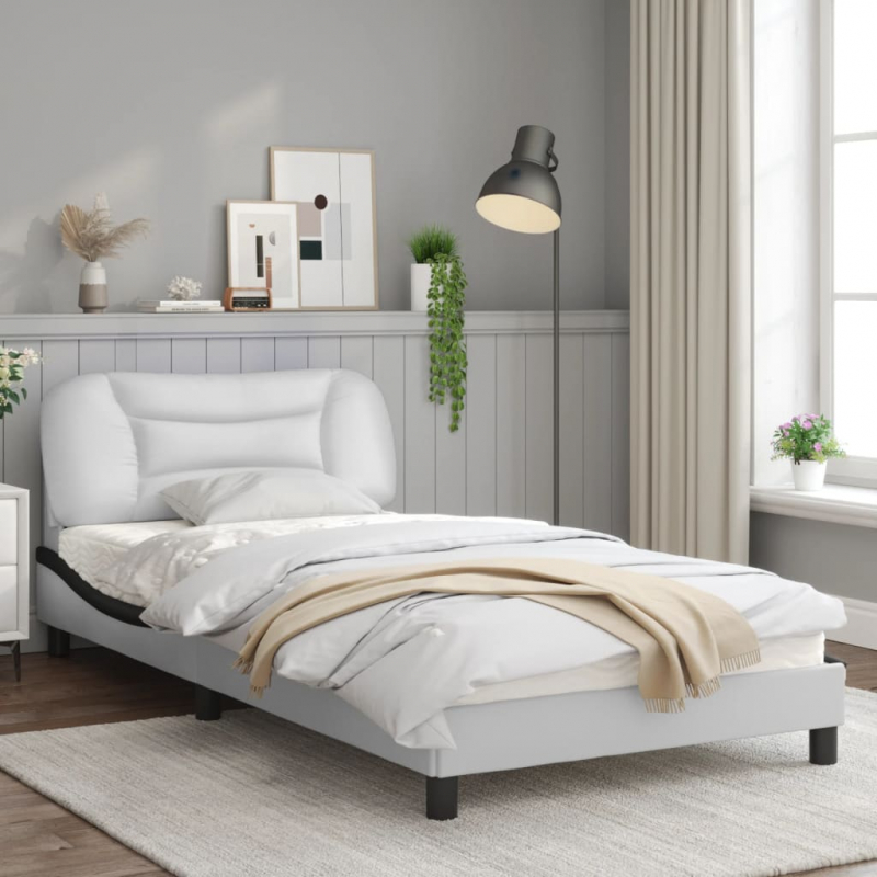 Bettgestell mit Kopfteil Weiß und Schwarz 100x200 cm Kunstleder