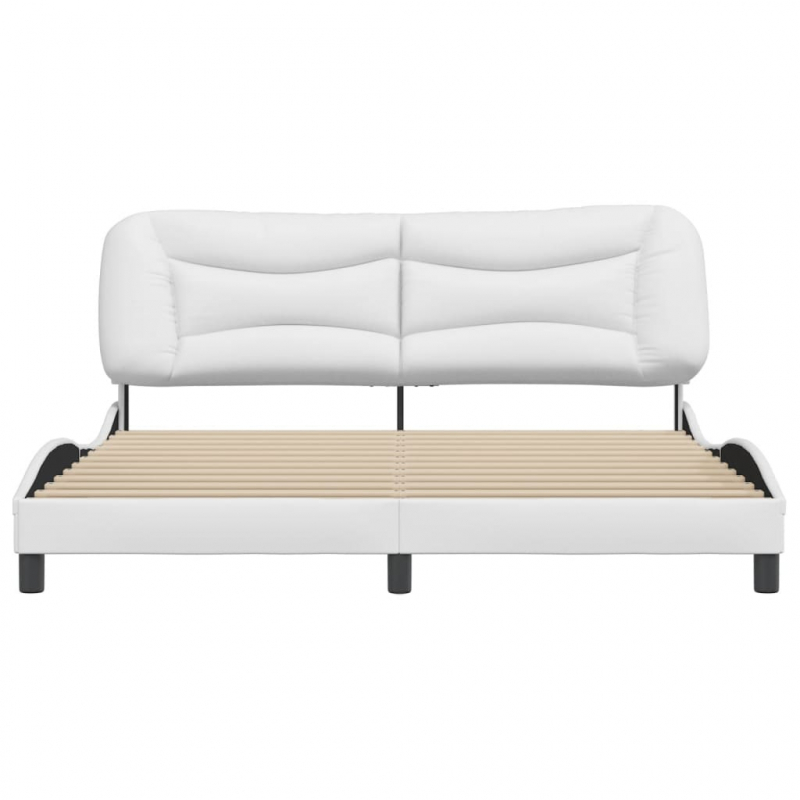 Bettgestell mit Kopfteil Weiß 180x200 cm Kunstleder