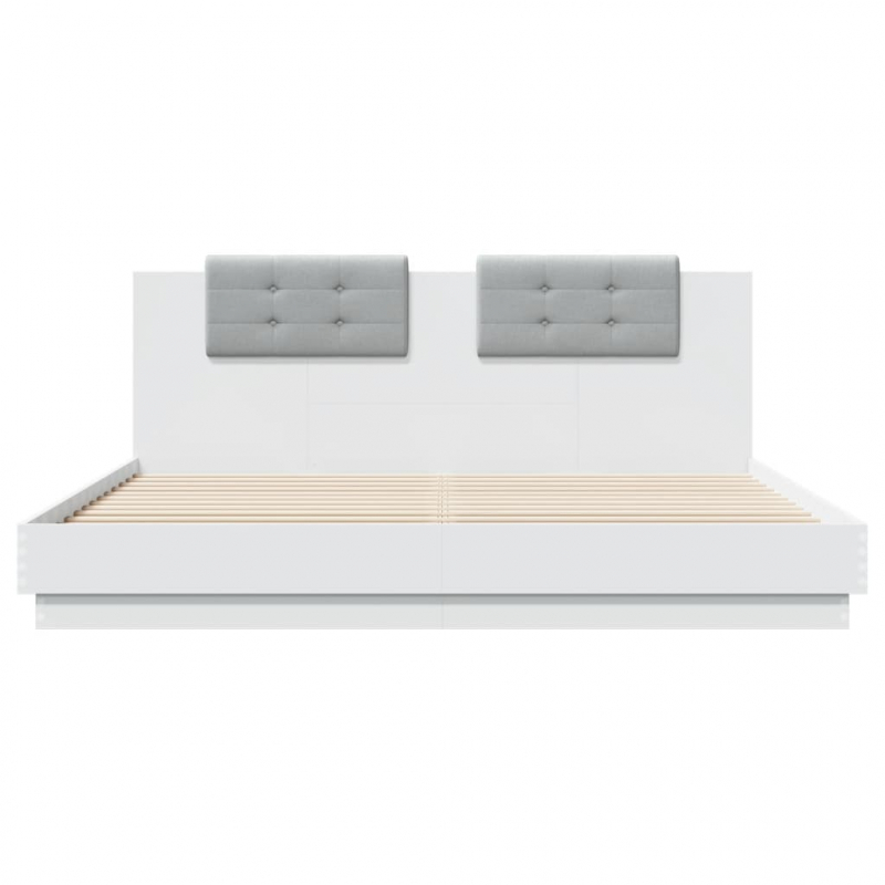 Bettgestell mit Kopfteil und LED-Leuchten Weiß 160x200 cm