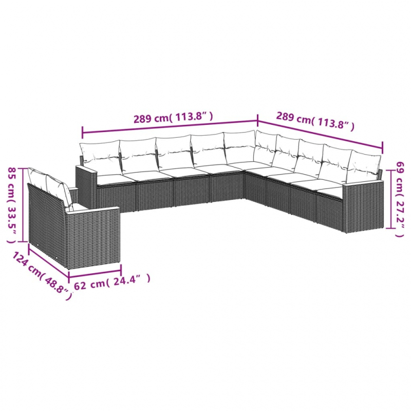 11-tlg. Garten-Sofagarnitur mit Kissen Grau Poly Rattan