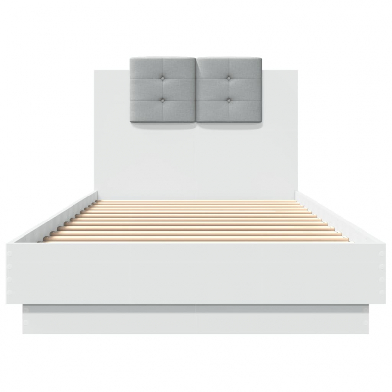 Mit diesem Bettgestell mit Kopfteil und LED-Leuchten genießt du einen besseren, erholsameren Schlaf! Es ist eine angenehme Bereicherung für jedes Schlafzimmer. Langlebiges Material: Der Holzwerkstoff ist von außergewöhnlicher Qualität mit glatter Oberfläche und zeichnet sich außerdem durch Festigkeit, Stabilität und Widerstandsfähigkeit gegen Feuchtigkeit aus.RGB-LED-Leuchten: Das Bettgestell ist mit lebendigen RGB-LED-Leuchten ausgestattet. Mit verschiedenen anpassbaren Menüs kannst du die Farbe der Lichter mühelos wechseln und sie sogar auf automatische Anpassung einstellen. Die LED-Beleuchtung unterstreicht den modernen Look des Bettgestelles und trägt zu seinem trendigen Design bei.Hervorragende Unterstützung: Das Kopfteil bietet eine ausgezeichnete Rückenstütze beim Lesen oder Fernsehen im Bett.Robuste Latten: Die Sperrholzlatten sorgen für eine gute Gewichtsverteilung und auch dafür, dass die Matratze bei jeder Bewegung Ihres Körpers während des Schlafes an Ort und Stelle bleibt. Gut zu wissen:Bei diesem Bett ist keine Matratze im Lieferumfang enthalten. Wir bieten jedoch eine große Auswahl an Matratzen an. Du kannst in unserem Shop nach einer passenden Matratze suchen.Das Produkt verfügt über einen USB-Anschluss, für den eine zertifizierte 5V-USB-Stromquelle erforderlich ist (nicht im Lieferumfang enthalten).