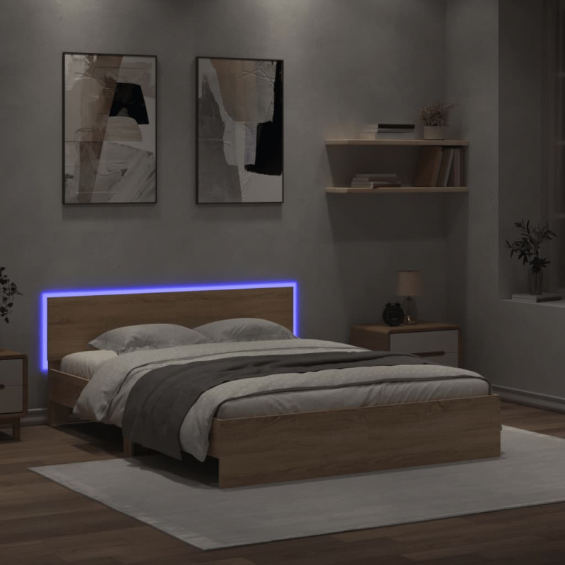 Bettgestell mit Kopfteil und LED-Beleuchtung Sonoma-Eiche
